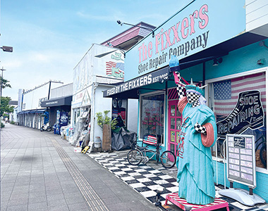 約1km続く商店街には約150の店が並び、なかには英字の看板も。英語メニューがあったり、ドル支払いができる店など、まさにアメリカ!米軍放出品や古着も人気で、アメリカ文化を満喫できます。