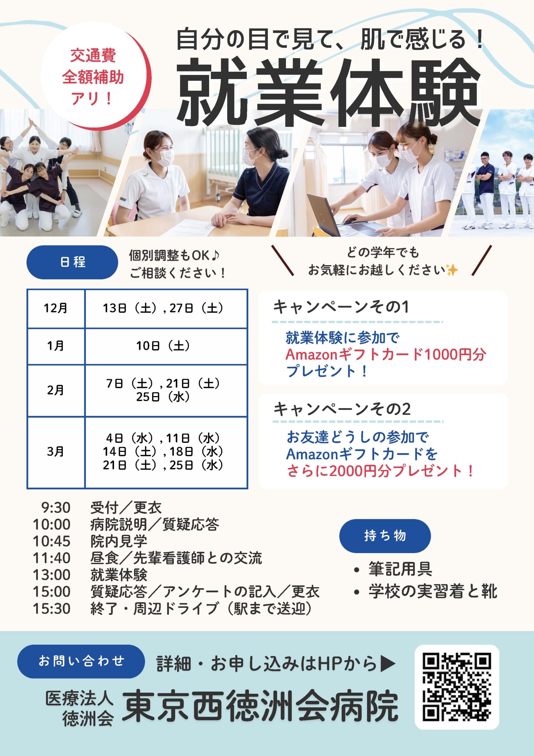 当院では看護学生さんを対象に、就業体験(インターンシップ)を開催しています。より深く病院の雰囲気を感じられる機会です。ぜひお気軽にご参加ください!