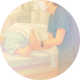 当院では特定行為研修を修了し、病院から承認を受けた看護師が医師の指示に基づいて作成した手順書に準じて、厚生労働省が定める38行為を状況に応じて実施しています。尚、当院の診療看護師はすべての特定行為を厚生労働省より認証されています。